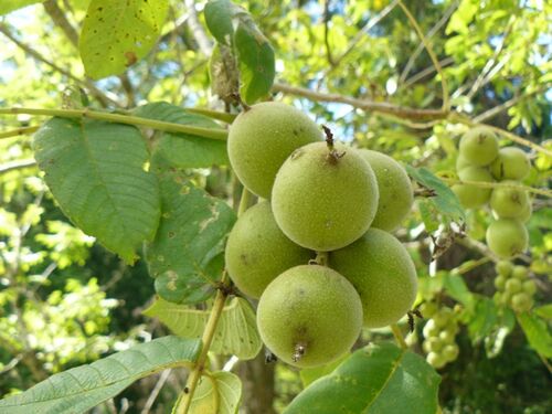 これがクルミ? 初めて見た。 あのいかつい、固い殻を この可愛い姿からは 想像出来ない。 触ると 接着剤みたいに 指に粘着性のものが付いた。 川の側に立っているなんて ずっと知らなかった。 葉が黄色くなり 実が弾ける秋を 楽しみに待ってるよ。