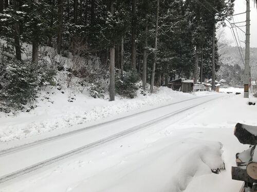 朝 カーテンを開けると 北風に吹かれて 雪が横流れに降っていた。 屋根に積もった軽い雪。 煙のように舞う。 小屋の前の道路は たまに走るバスのタイヤの跡が消えない。 軽い雪は 歩くたびに 靴の周りでふわりふわり。 車に積もった雪を落とすと それも ふわ…