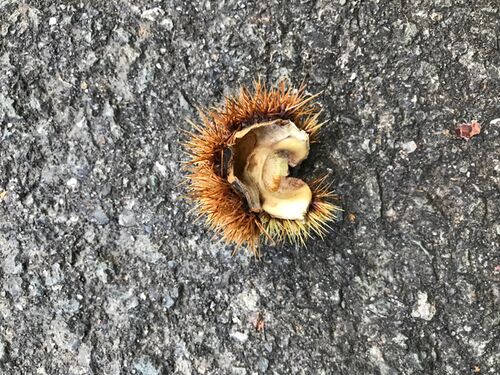 栗の毬(イガ) 道路脇に バラバラと散らばる栗の毬(イガ)は 見上げる山に根を張る あの栗の木からだ。 可愛い茶色の栗坊主を 抱き抱えていた毬(イガ)。 風の強い日に バラバラと落ちた。 晴れが続いた日々。 金星が輝き 星座も空に広がった夜 アスファ…