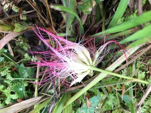 合歓の花 一晩中 強い雨が降り続いた。 今朝 霧のような雨の中 背の高い合歓の木の下に 淡いピンクの絹糸のような花が 沢山落ちていた。 それは 雨に濡れた子猫の毛の様に ピンピンと固まって 可愛い。 山の木々の葉 原っぱの草 そして 花びらに雨の露が光り…