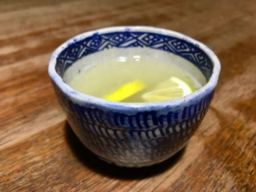 先日 ご紹介した「泉北ニュータウンのレモン」を 熱々のレモネード ホットレモンにして飲んだ。 湯呑みにレモンを絞り 蜂蜜をたっぷり加え ストーブの上で湯気をたてているヤカンから ほとばしる熱湯を注ぐ。 その湯呑みは30数年前 寺町二条の骨董屋で買っ…