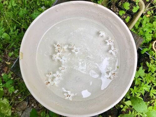 エゴの花 降り続いた雨が 夕方に霧雨に変わった。 山も 林も 草はらも 道路も ぐっしょりと濡れて 濡れそぼつとは こんな事を言うのだろう。 小屋のそばに 縁のかけた白の鉢を置いてある。 鉢いっぱいに溜まった雨水に 土が薄く溜まっている。 私は 鉢の水を…