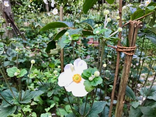 秋明菊(貴船菊) 見た目だけでは分からない。 白い花びらが風に震えている様は 添え木でもしてやらないと 倒れるのではないかと思う。 繁殖力旺盛 土を掘ると葛のような力強い根っこ。 夏になると 手のひらくらいの葉っぱが 土を覆うように繁る。 夏の初め…