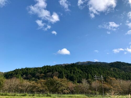 灰色の空がやって来て 冷たい雨が降った。 ざーっと通り過ぎた後に 青い空が広がった。 山の上に 小さな雲がぽっかりと浮かんでいるのが とてもいいなあと思った。 銀杏の葉が黄色に変わり 桜の葉が少し色づいた。 突然やった来た秋なので まだ 夏を引きずり…