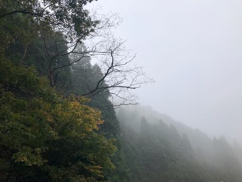 朝 目覚めると 窓の外は真っ白な霧に包まれている。 そんな朝が続いている。 今朝も 峠では美しい雲海が見えるはず。 小屋の前の道は 白い霧の中へ吸い込まれる様に消える。 こんな白い風景を 今まで何回見た事だろう。 スマホを持ち 外に出る。 草も落ち葉…