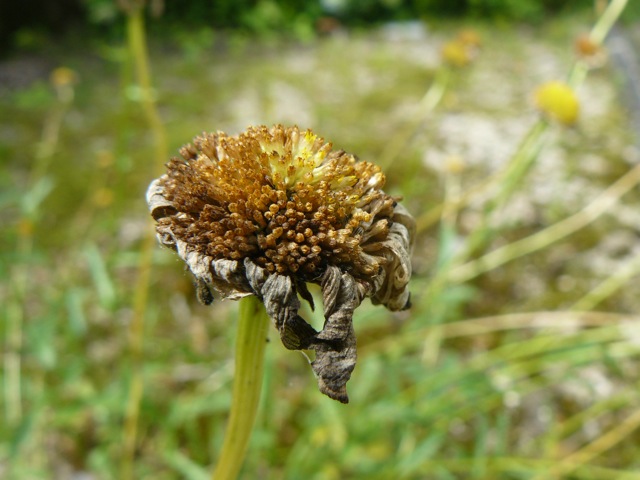 2018-06-19 枯れた除虫菊 自然 除虫菊 マーガレットの様な白い花。 陽の光を浴びた明るい姿が 蝶や蜜蜂を呼び寄せる。 風に揺れていた白い花。 気がつけば麻の茶色に。 これはこれでとてもいい風情だ。 葉は落ちて すくっと立つ姿。 沢山刈って ガラスの瓶に入れようか? 茎までが美しく 目を喜ばすはず。 駄目だよ よそ様の庭先の花を刈るなんて。 たとえ枯れた花であっても それはいけない事だ。